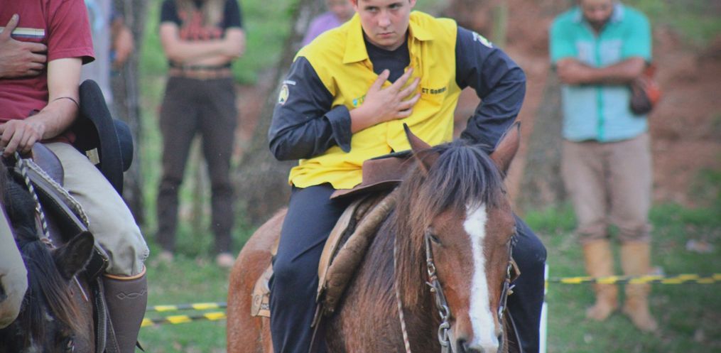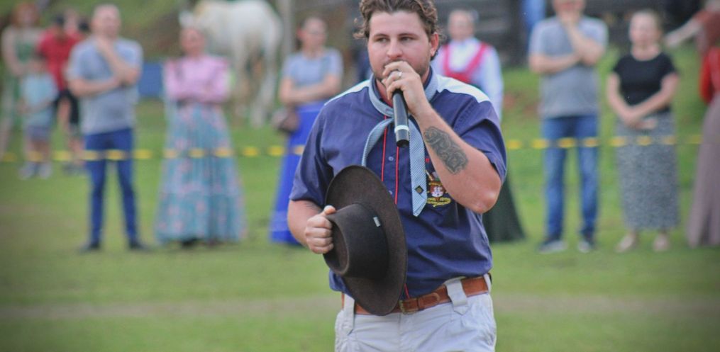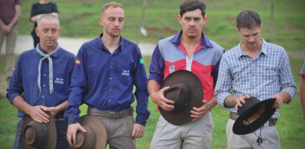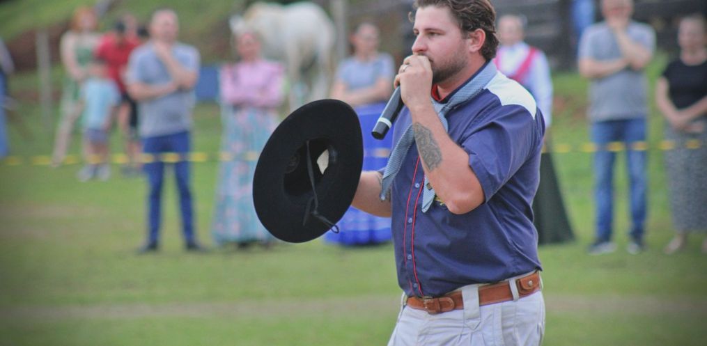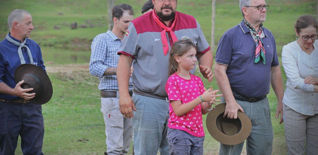 A oração do Pai Nosso e da Ave Maria marcou o segundo dia do Acampamento Farrapo, realizado em São Miguel do Oeste. O evento iniciou na sexta-feira, 19, e segue até a tarde deste domingo, 21, na sede campeira da Linha Gramadinho.
