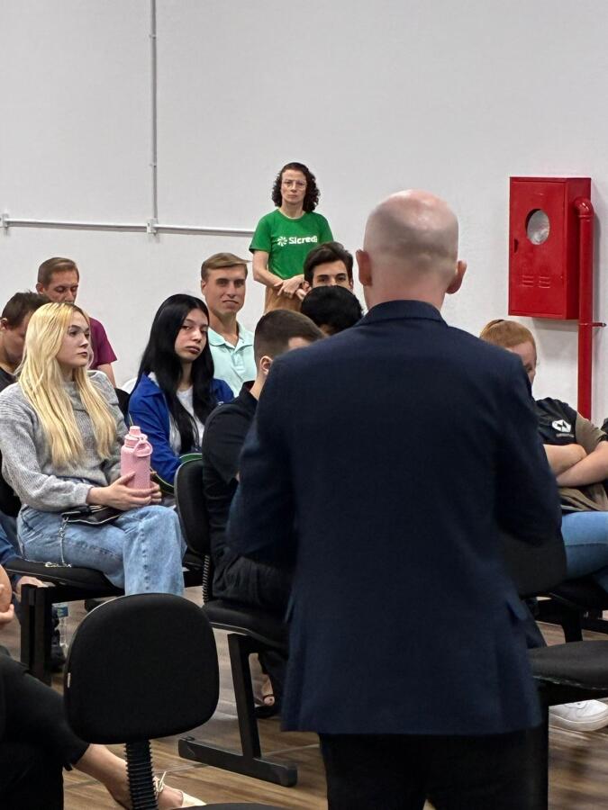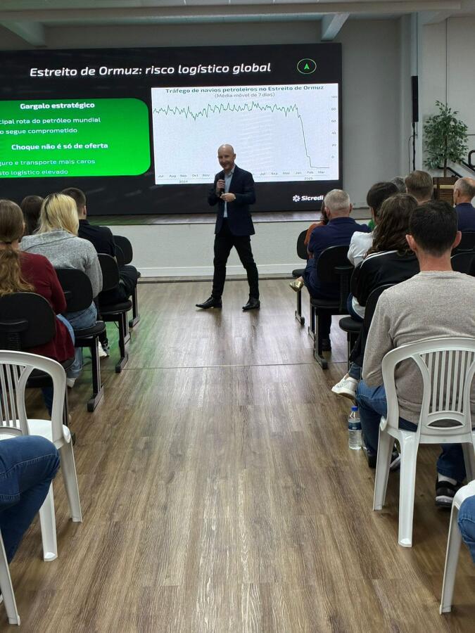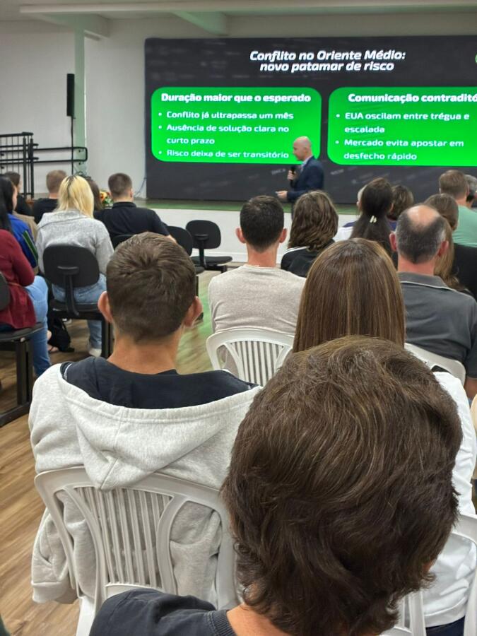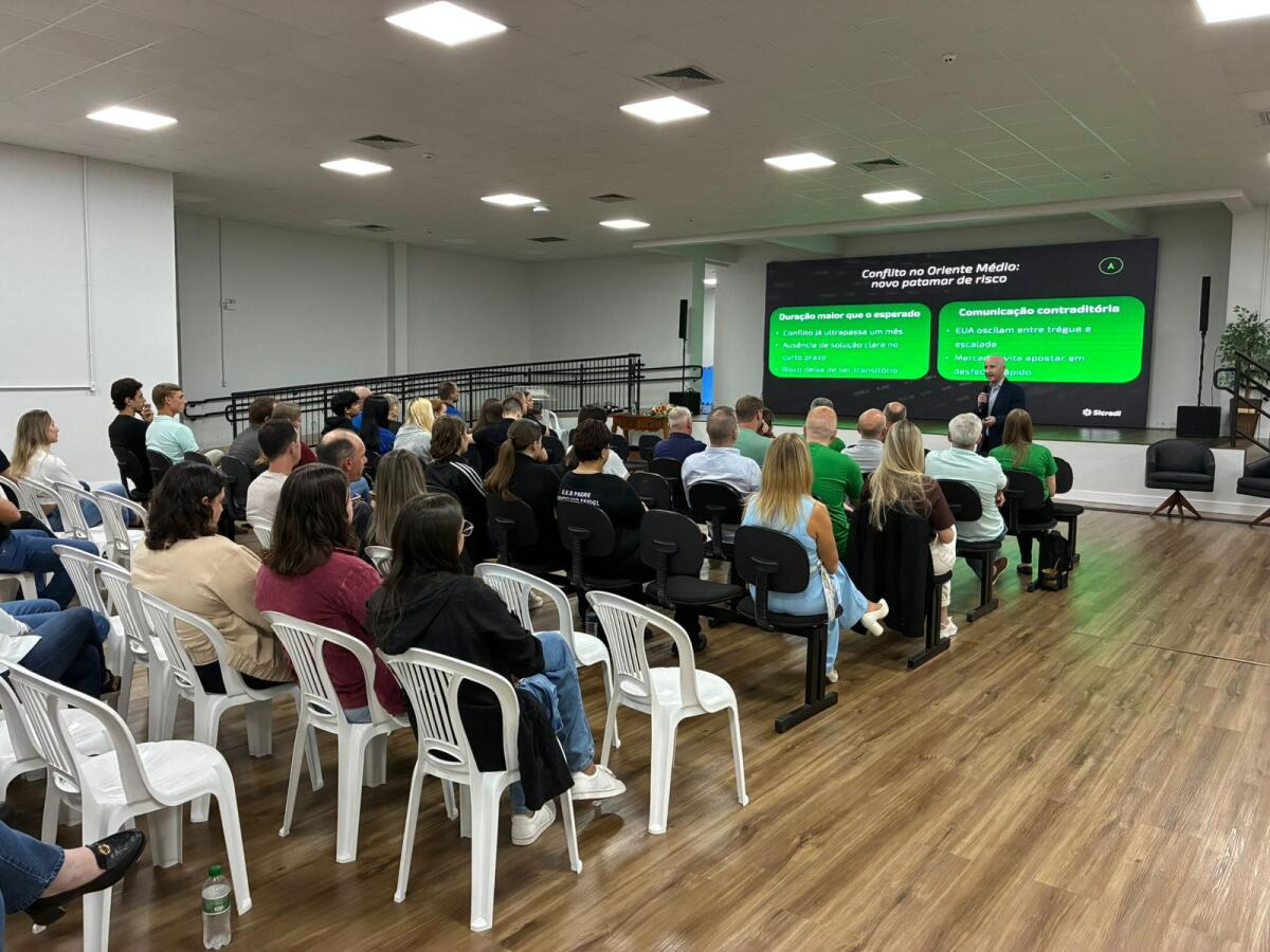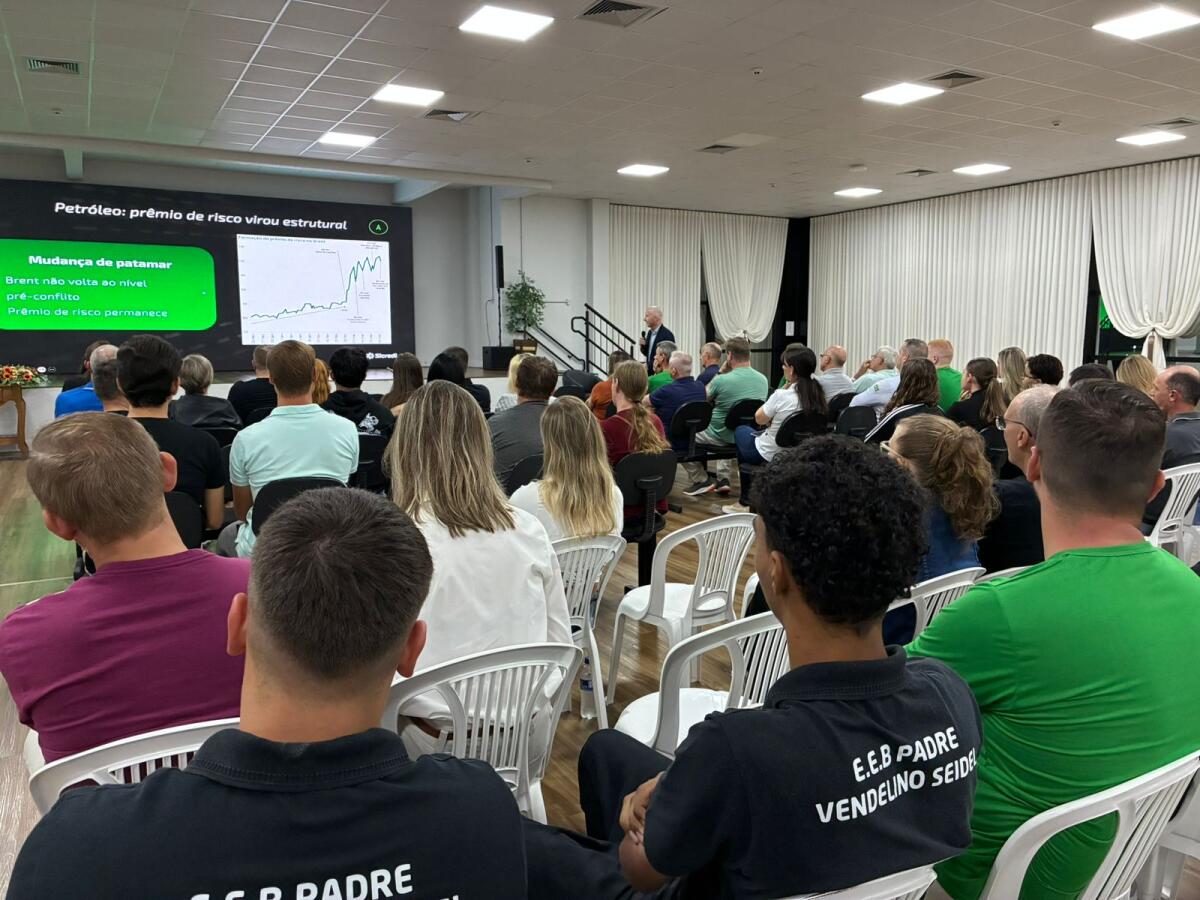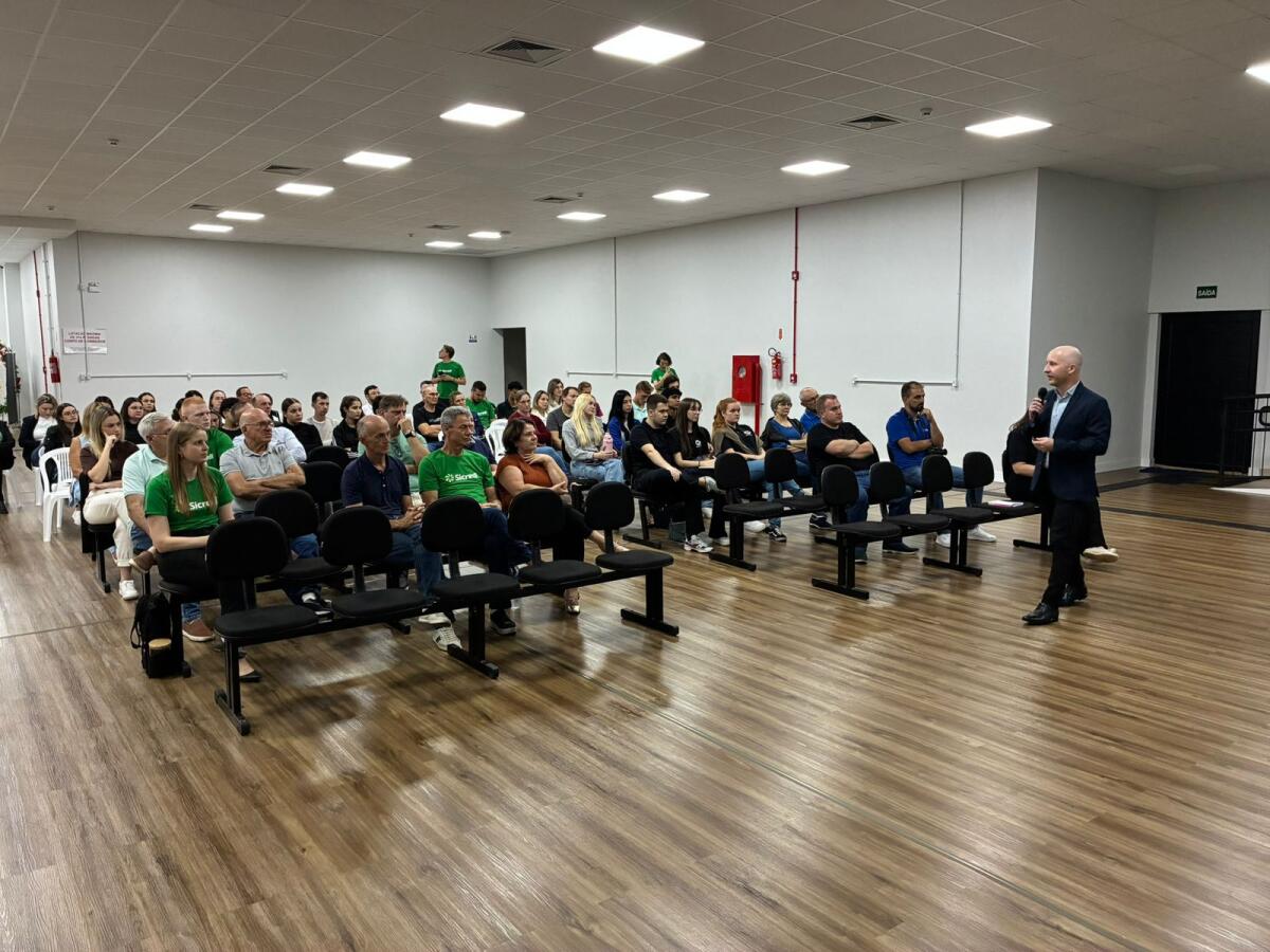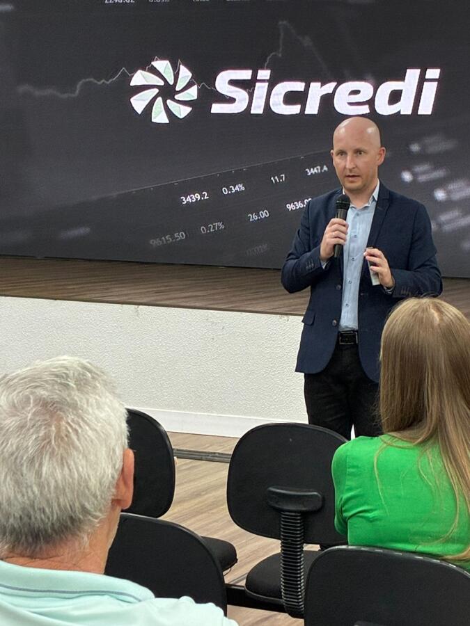 A palestra, conduzida pelo especialista em investimentos, Cleiton Luft, colaborador do Sicredi, abordou o cenário econômico e apresentou análises e projeções para os próximos meses, em um momento marcado por incertezas e mudanças rápidas no mercado. No final do encontro, Cleiton Luft abriu espaço para perguntas, respondeu aos questionamentos, e parabenizou os organizadores pela grandiosidade da feira.