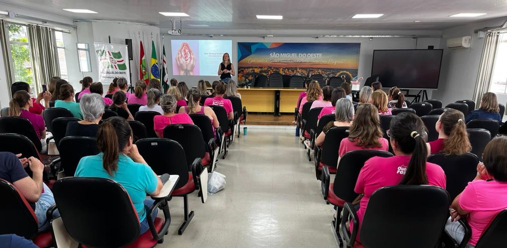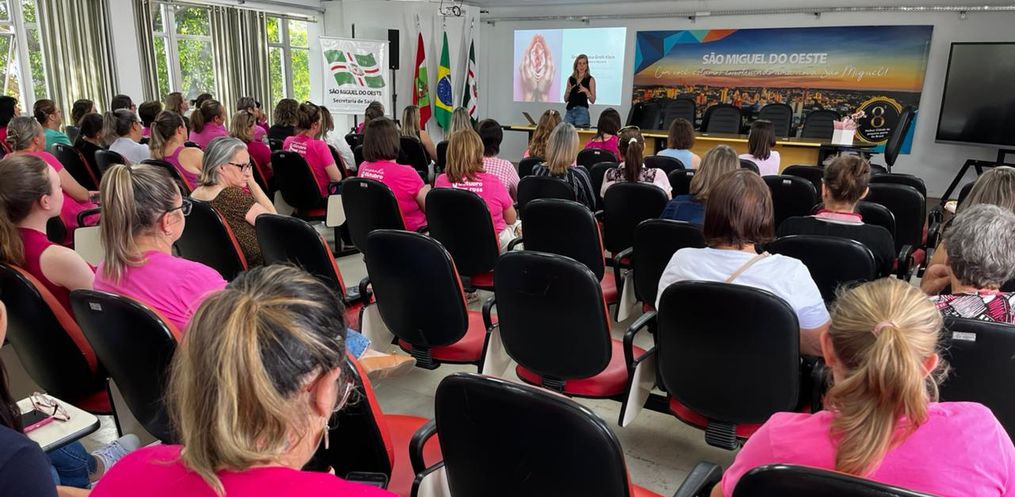 Em alusão ao Outubro Rosa, a Prefeitura de São Miguel do Oeste realizou na tarde desta sexta-feira, 24, uma palestra especial sobre saúde da mulher, prevenção ao câncer de mama e autocuidado.