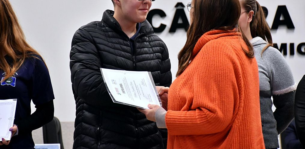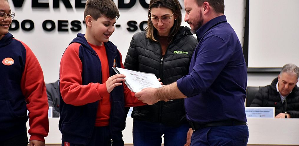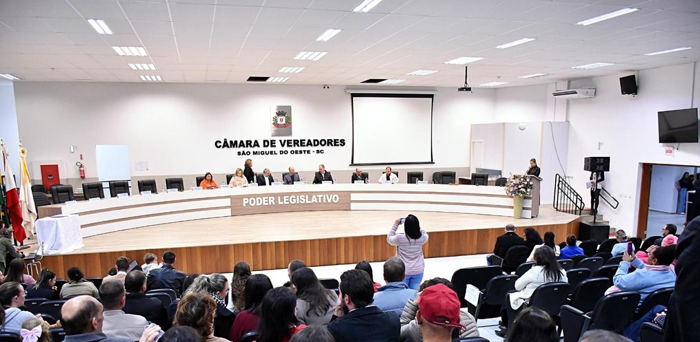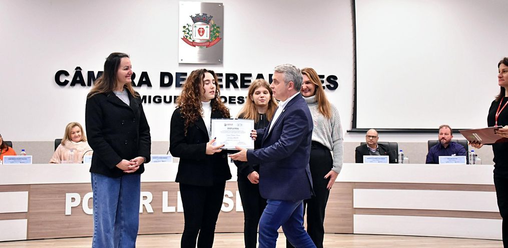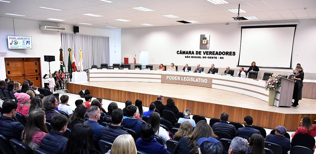 A Câmara Municipal de São Miguel do Oeste realizou nesta segunda-feira, 9, a sessão solene de diplomação e posse dos novos integrantes do Programa Parlamento Jovem, que representarão suas escolas durante o ano legislativo de 2025.