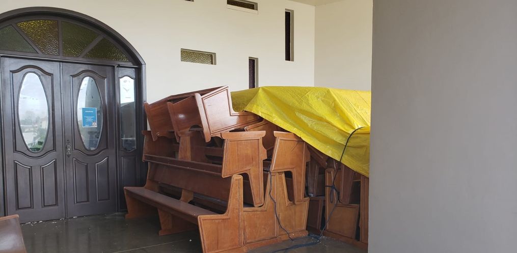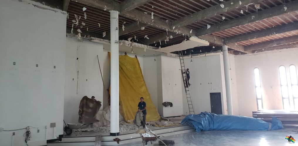 A Paróquia Nossa Senhora das Mercês de Iporã do Oeste está trabalhando na reforma do forro da Igreja Matriz, depois que a estrutura apresentou problemas, com queda de parte do gesso há alguns dias.