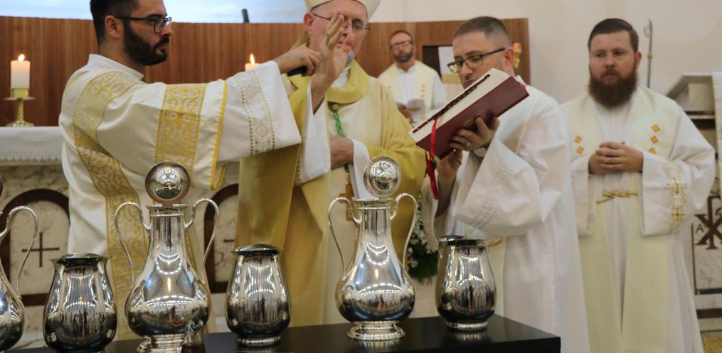 Na celebração foram abençoados os óleos que serão usados nas cerimônias sacramentais. Tradicionalmente a missa é realizada na quarta-feira que antecede à Páscoa, para facilitar toda a mobilização das Paróquias e seus padres.