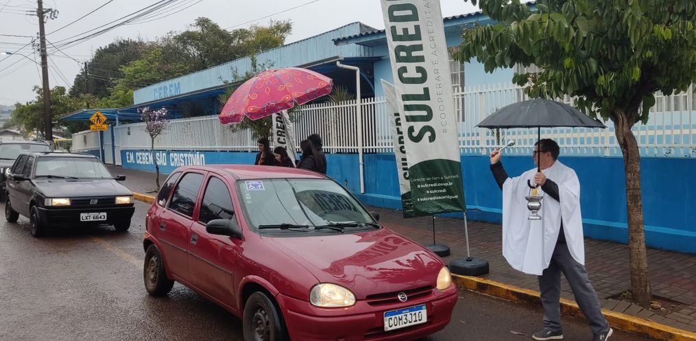 A benção iniciou as 8h30, em frente à Igreja Matriz, acompanhada pela Polícia Militar e percorreu algumas ruas de São José do Cedro e encerrou perto da Gruta São Cristóvão, onde é realizada a benção.