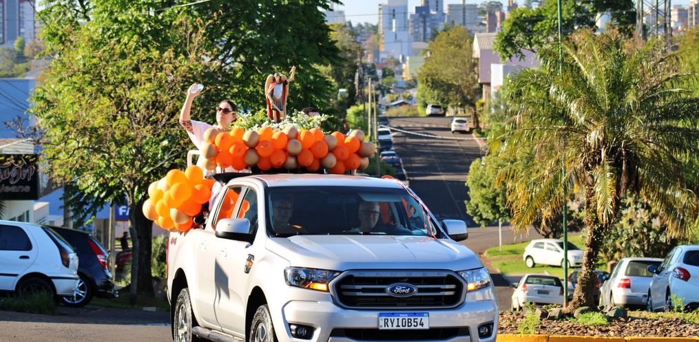 O cortejo religioso contou com a passagem por instituições como a Apae, creches, escolas e hospitais, levando bênçãos e mensagens de fé à comunidade.