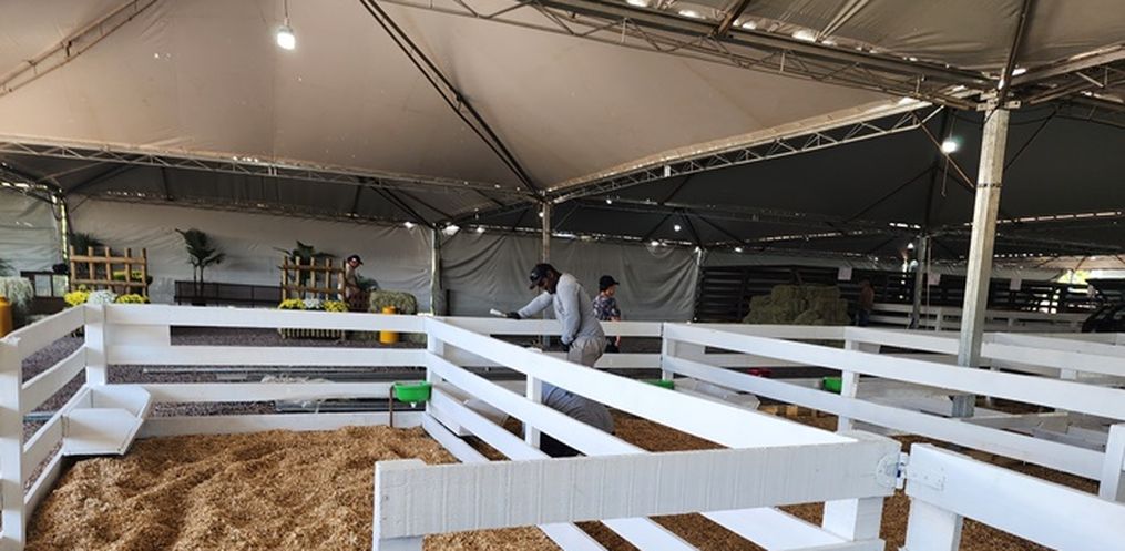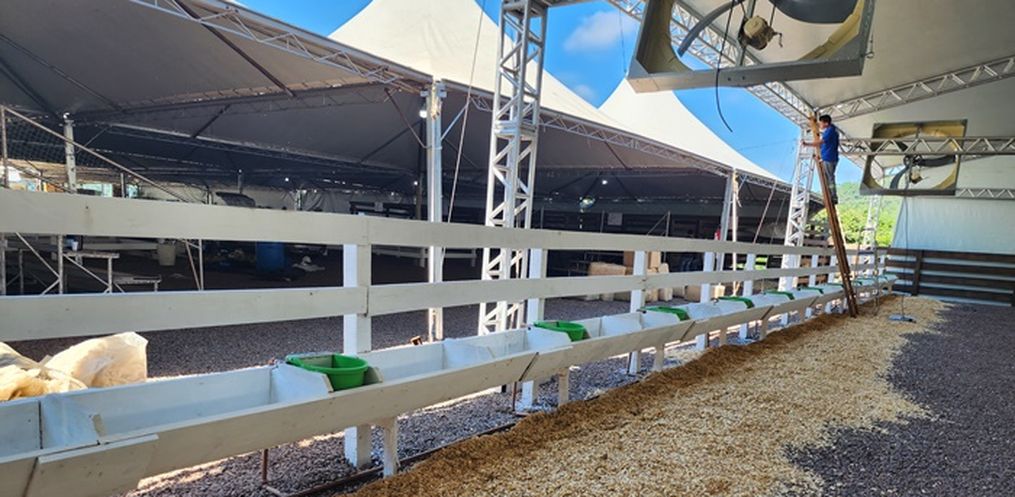 A partir da chegada no setor agropecuário da Efrait, uma equipe terceirizada cuida do bem estar, alimentação, limpeza e disponibilidade de água durante a exposição.