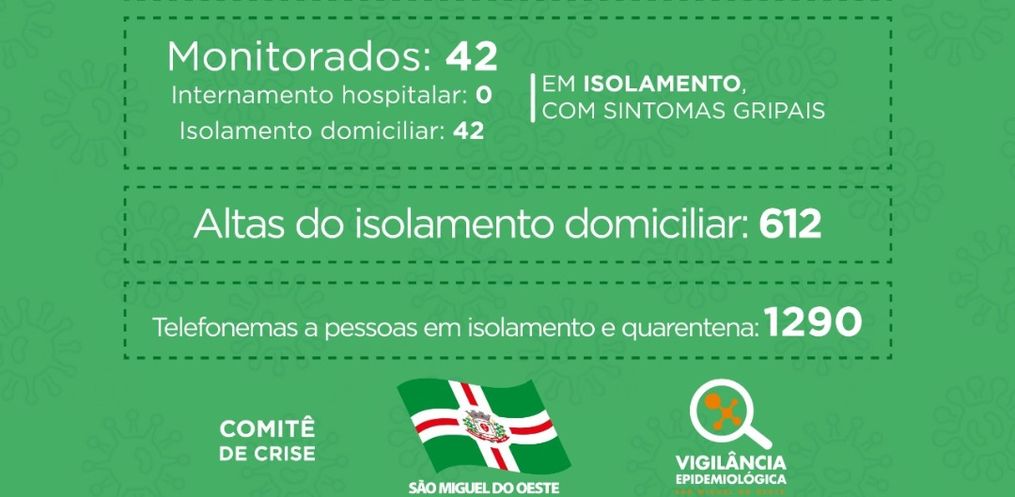 Assim, ultrapassa 100 o número de pessoas recuperadas da COVID-19 em SMO. Outro homem testou positivo para o coronavírus no dia de hoje em São Miguel do Oeste. Dos 116 casos já confirmados no município, 102 já estão recuperados, e 14 permanecem em isolamento domiciliar.