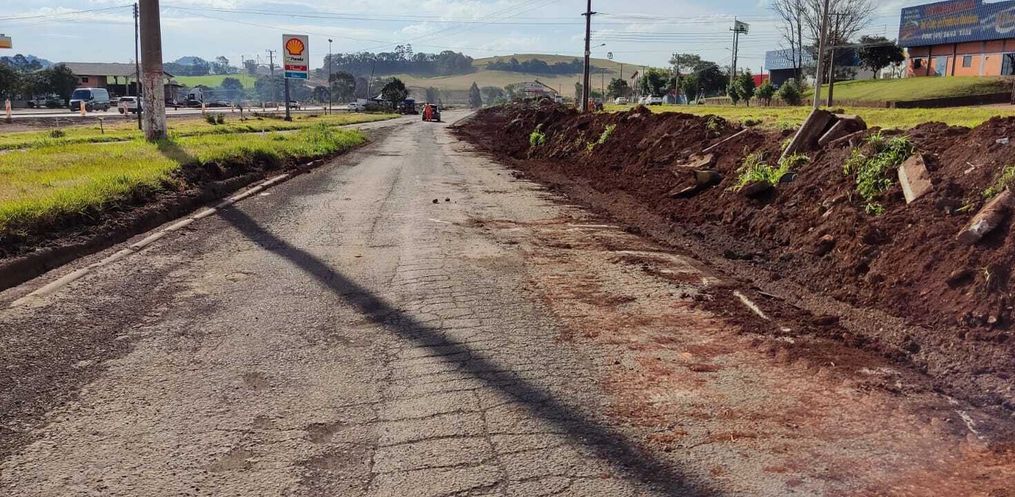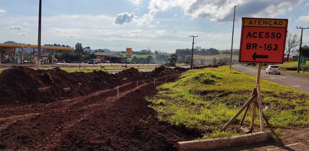 A empreiteira TORC tem efetuado, além da concretagem, a adequação do terreno na Linha São São Domingos, bem em frente ao posto Panda, ao lado da marginal 160. O espaço deverá ser utilizado para ampliação da rodovia federal como tem ocorrido em diversos pontos, além do enquadramento do trevo de acesso aos parques industriais existentes na redondeza.