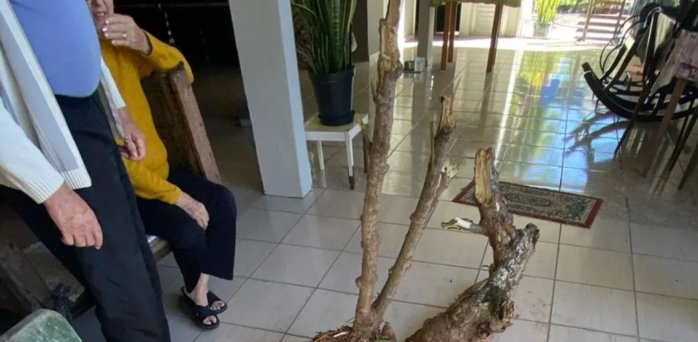 "Eu comecei a cavar. Quando estava liberando a raiz maior, fui verificar as outras também. Comecei a limpar e cavar, até que senti que estavam começando a soltar. O vizinho tem uma empresa e tem um jardineiro. Ele estava curioso e pedi 'vem cá, me ajuda. Vem ver o que está acontecendo, nunca vi isso na minha vida'", disse Otávio, que tem 76 anos.