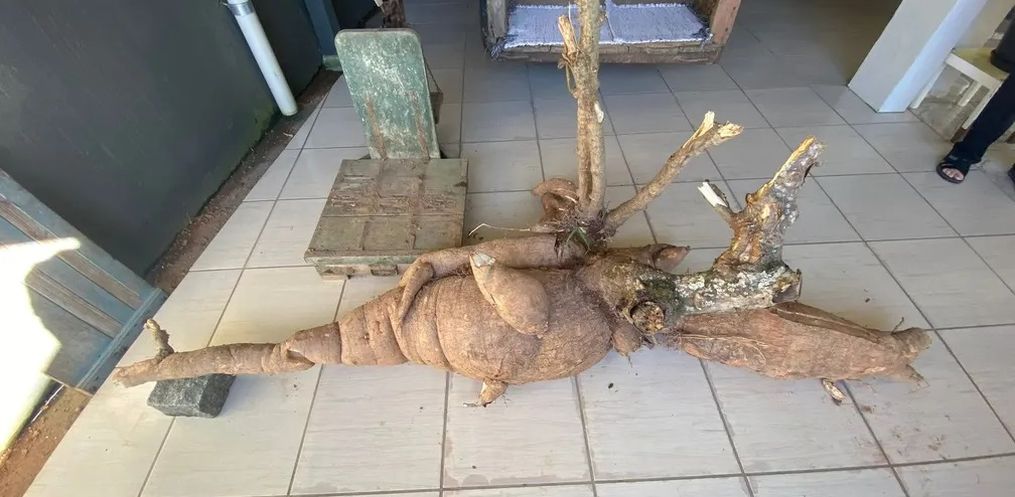 "Sendo uma planta perene, se deixar e ter condições de desenvolvimento, ela vai crescer", disse Barth. Em relação ao pé de mandioca colhido pelo casal, ela disse que a colheita mais tardia e a adubação favorecem o desenvolvimento da planta.