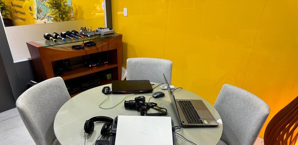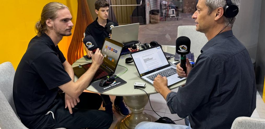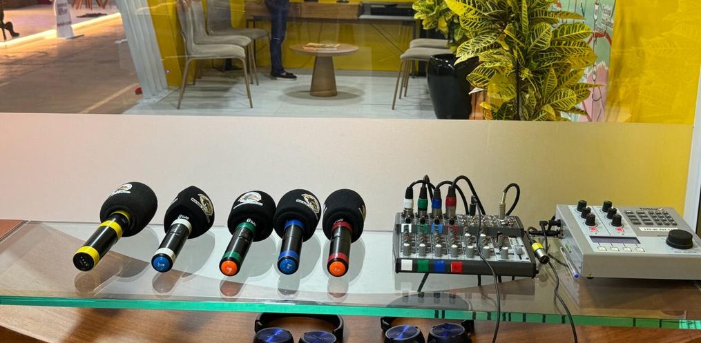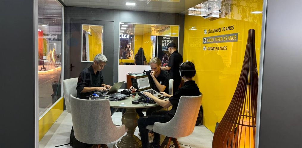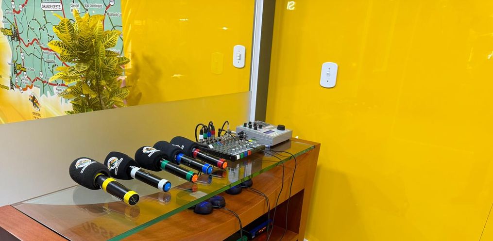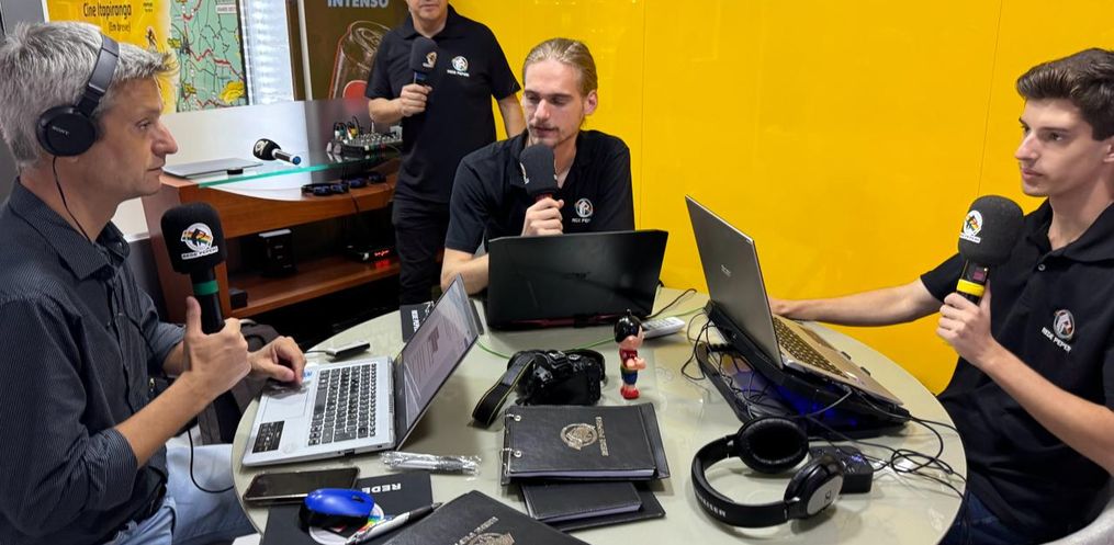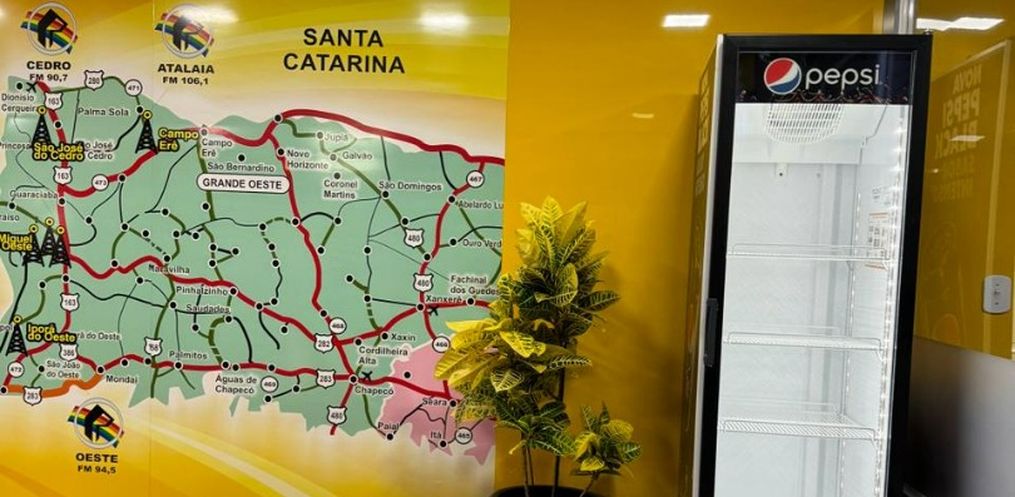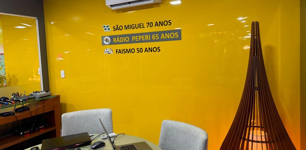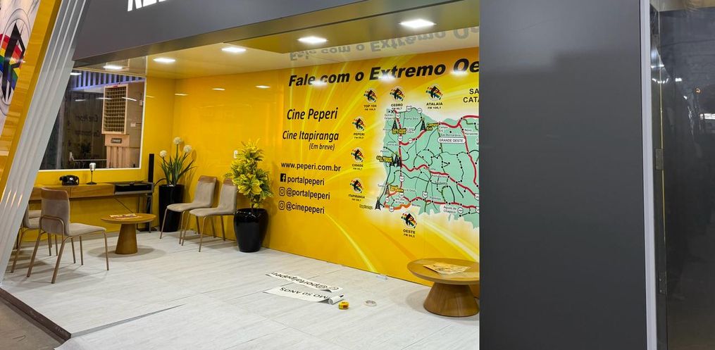 Uma das novidades da casa da Peperi na Faismo 2024 é a mudança do estúdio de vidro que agora fica ao lado da saídaà direta do pavilhão. O estúdio foi ampliado e agora tem com vitrines de acrílico, o que melhora a acústica do espaço. Além disso, a recepção conta com um local para receber os visitantes e um grande mapa com a presença das emissoras da Peperi no extremo-oeste.