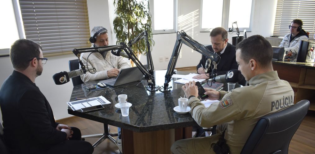 Participaram do debate o delegado de polícia, Sandro Zancanaro, o tenente da Polícia Militar, Leonardo Schwarz, e o advogado e professor de Direito Penal, Marcos Johner.