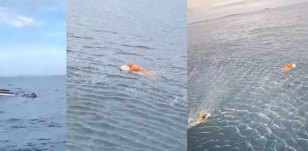 Para se manter vivo, o homem se agarrou a uma porta do refrigerador e ficou no mar até ser localizado pelo helicóptero Águia 01, próximo às Ilhas Tamboretes.