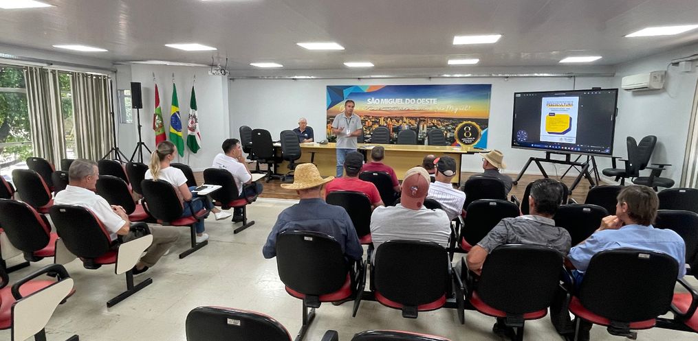 Produtores de peixes de São Miguel do Oeste participaram, na tarde desta quarta-feira, 17, de uma reunião promovida pela Secretaria Municipal de Agricultura, Pecuária e Piscicultura. O encontro, realizado no Salão Nobre da Prefeitura, contou com apoio da Administração Municipal, EPAGRI e do Conselho Municipal de Desenvolvimento Rural (COMDER).