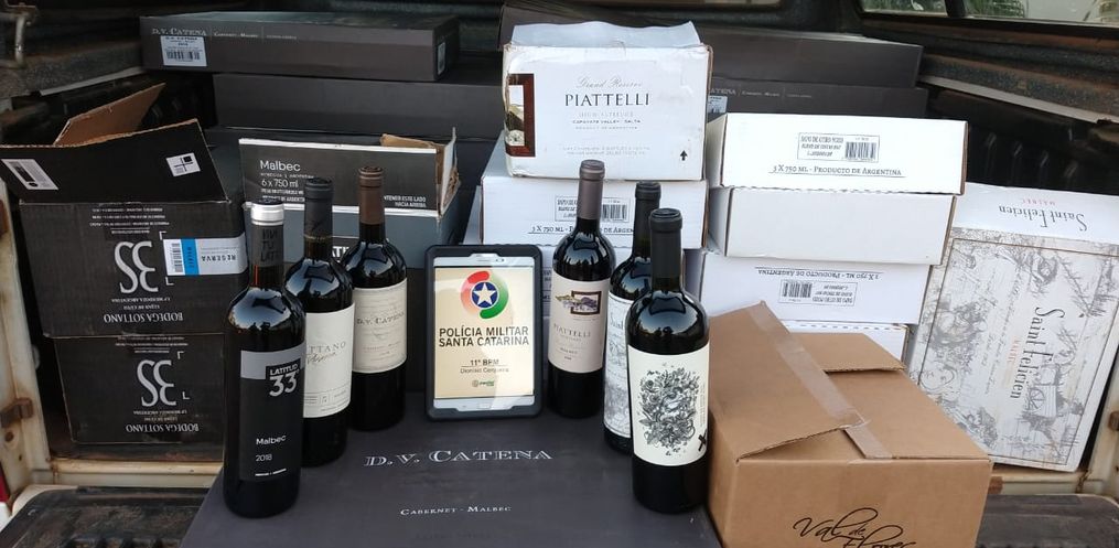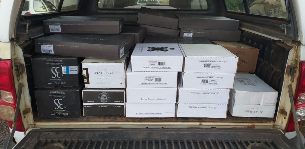 No carro havia três caixas de vinhos e na casa abandonada 42 caixas, também com vinho, de diversas marcas, sem os devidos despachos aduaneiros. Foram contabilizadas 246 garrafas com valor aproximado de mercado no Brasil em R$ 50 mil.