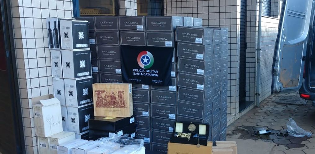 A Polícia Militar realizou a apreensão de 181 caixas de vinho argentinos sem o devido desembaraço aduaneiro em Palma Sola. De acordo com a PM, a apreensão aconteceu nesta terça-feira, 04, em abordagem a um furgão na BR-280.