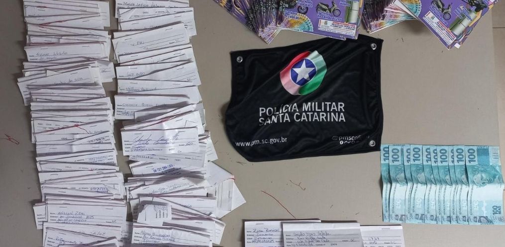 Durante busca no interior do veículo foi localizada uma mochila cheia de cartelas de uma suposta rifa, a qual não possui qualquer registro junto aos órgãos competentes. Além disso, o CNPJ descrito na rifa é de uma empresa individual do motorista abordado.