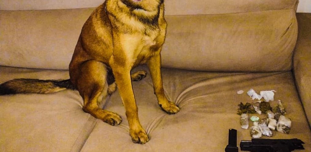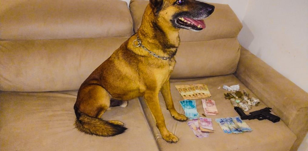Após algumas tentativas foi localizado um morador do imóvel e, após uma conversa, este autorizou a entrada da guarnição na residência. Novamente com o auxílio do canil setorial de Concórdia foram localizadas na parte de baixo da pia uma pistola calibre 380, municiada com 14 projeteis, R$ 586,00 em espécie, espalhados por diversos pontos da residência. Ainda, entro da geladeira, foram encontradas várias frações de maconha e em um dos quartos também foram localizadas outras porções de drogas.