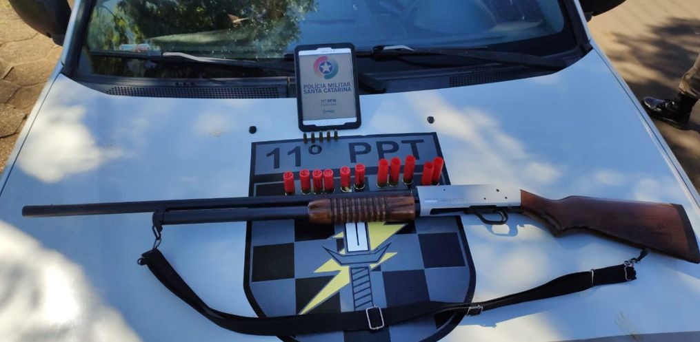 A Polícia Militar prendeu um homem por volta das 17h de sábado, 04, por posse de munição e arma de uso restrito no Bairro Progresso, em São Miguel do Oeste.
