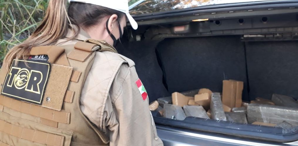 A Polícia Militar Rodoviária (PMRv) apreendeu grande quantidade de droga e recuperou um veículo roubado, por volta das 17h30 desta segunda-feira, 25, em Nova Erechim.