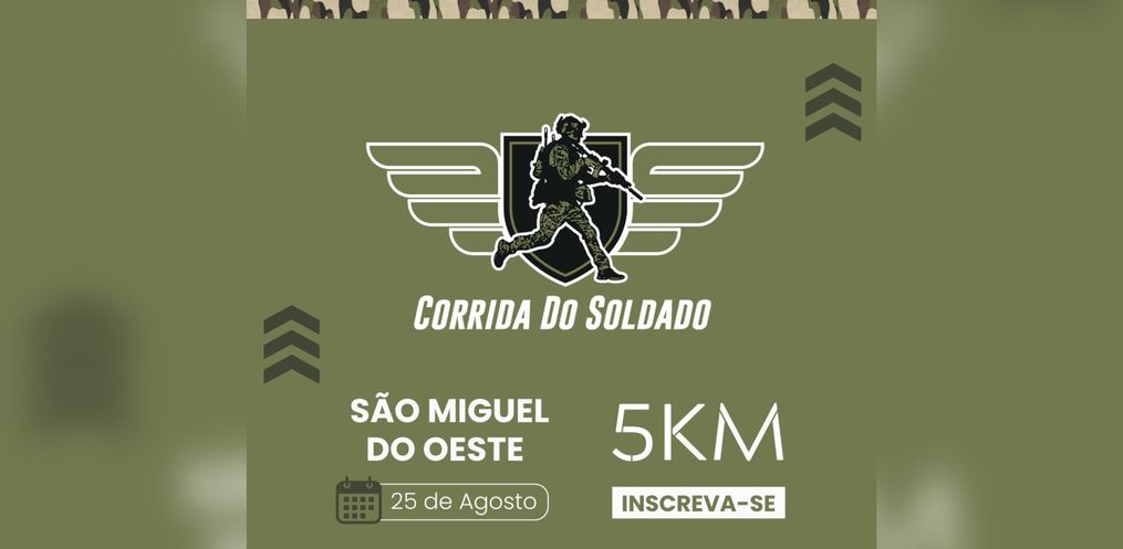 A Polícia Militar de Santa Catarina (PMSC), através do 11º Batalhão de Polícia Militar de Fronteira de São Miguel do Oeste, em parceria com a Prefeitura Municipal, o 14º Regimento de Cavalaria Mecanizado, o Corpo de Bombeiros e a Acosmo, está organizando a segunda edição da Corrida do Soldado.