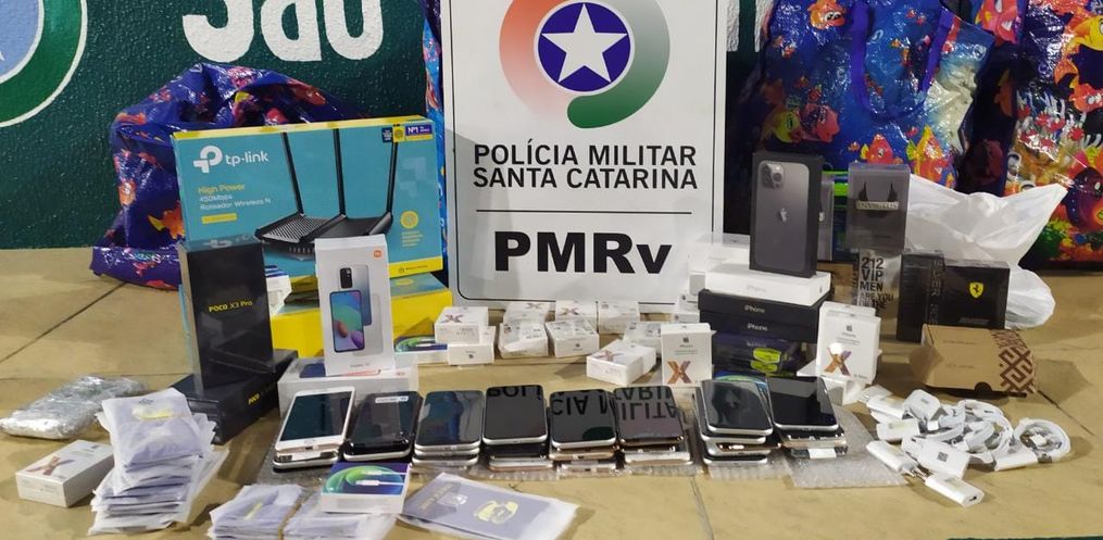 As mercadorias, avaliadas em aproximadamente 170 mil reais, foram encontradas no compartimento de bagagem de um ônibus que transitava pela na SC-157.