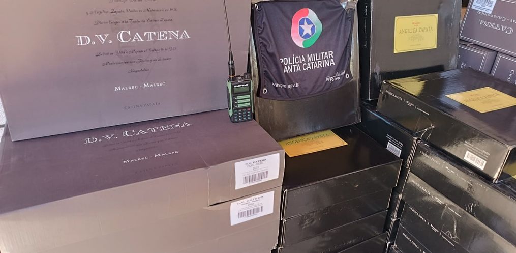 Segundo a Polícia Militar, o veículo Fiat Línea, com placas de Concórdia, chamou a atenção dos policiais por estar com a suspensão traseira rebaixada. Ao abordarem o motorista, os agentes encontraram 300 garrafas de vinho de origem argentina armazenadas no porta-malas e sobre os bancos do carro.
