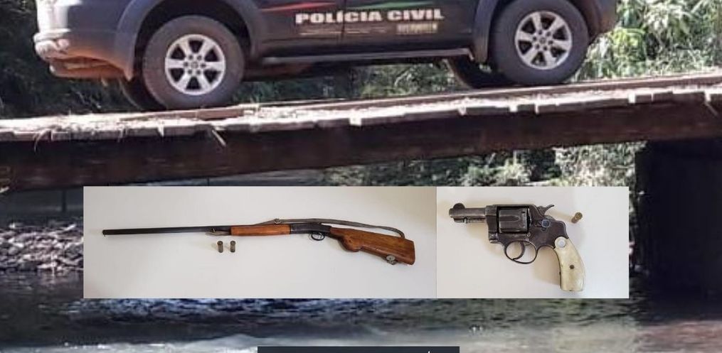 Na manhã desta quarta-feira, 26, a Polícia Civil deu cumprimento a um mandado de busca e apreensão na zona rural de Dionísio Cerqueira e apreendeu duas armas de fogo.
