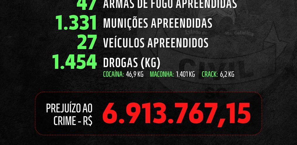 A Polícia Civil de Santa Catarina, por meio da Diretoria de Polícia de Fronteira (DIFRON), divulgou nesta quarta-feira, 18, os resultados da Operação PROTETOR no Oeste Catarinense ao longo de 2024. A ação, que visa combater o crime organizado e as atividades ilícitas transnacionais, abrange os 89 municípios da região que fazem divisa com Paraná, Rio Grande do Sul e Argentina.