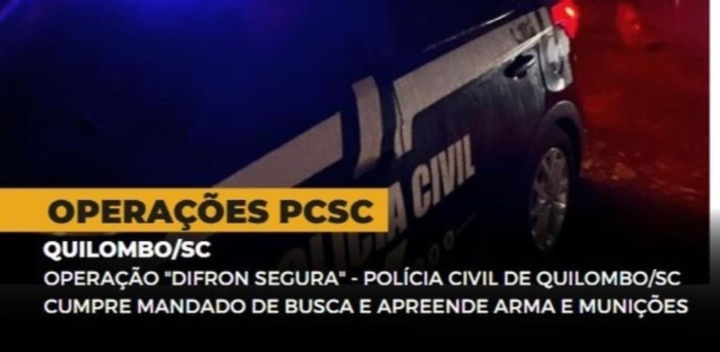 Na manhã desta quarta-feira, 28, a Polícia Civil de Santa Catarina, por meio da Delegacia de Polícia de Comarca de Fronteira de Quilombo/SC, com apoio do Núcleo de Operações com Cães da 28ª DRP-Fron, durante a operação "DIFRON Segura", cumpriu mandado de busca e apreensão. Foram localizadas duas armas de fogo e diversas munições.