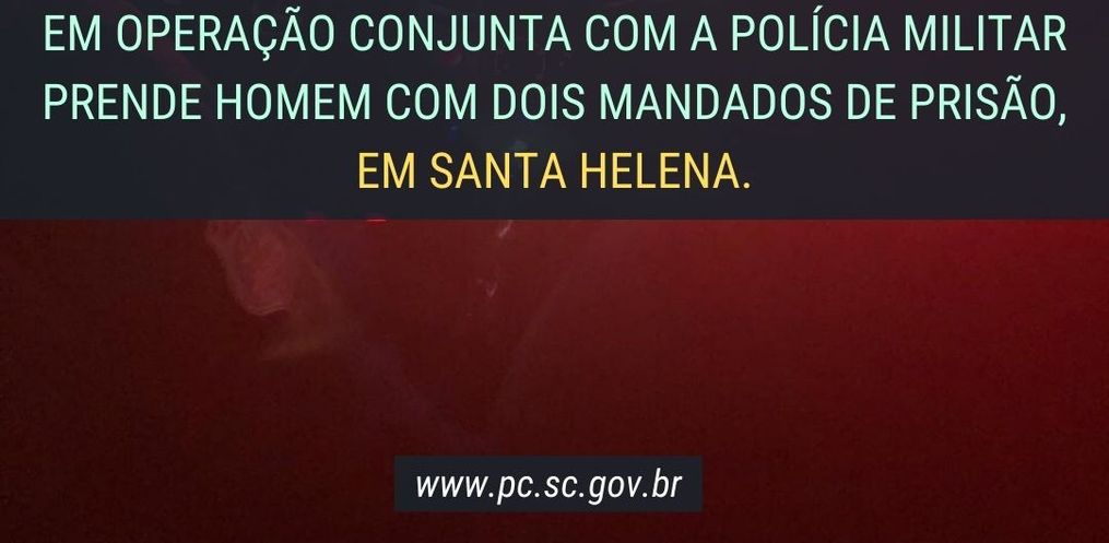 Nesta tarde desta quarta-feira, 27, após informações recebidas da população local, em uma ação conjunta e rápida, Policiais Civis e Militares de Santa Helena e Belmonte, prenderam um homem de 32 anos, o qual estava no interior de uma residência no centro do município de Santa Helena.