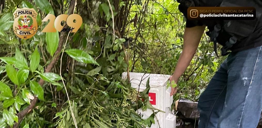 Todos os objetos apreendidos foram localizados em região de mata situada nas proximidades do domicílio do investigado, envoltos por sacolas plásticas e cobertos por vegetação.