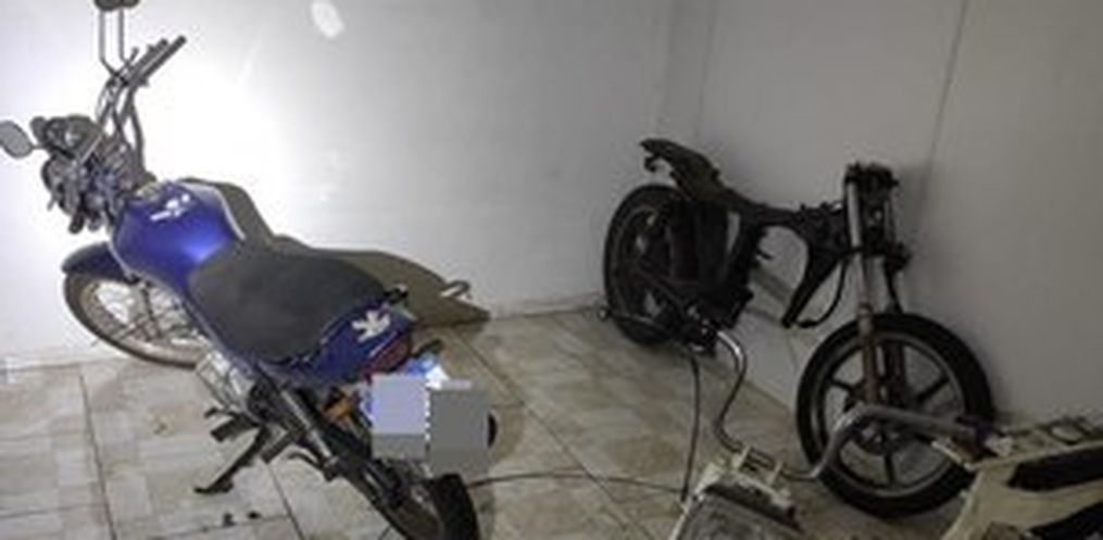 As demais motocicletas que estavam na oficina localizada na Rua Cândido Portinari, estavam parcialmente desmontadas, sendo realizada a consulta através de numeração de chassi e número de motor, os quais também possuíam restrição de furto/roubo (HONDA/CG 150 SPORT). Um chassi e um motor que estavam no local apresentavam a numeração suprimida por abrasão, não sendo possível identificá-los.