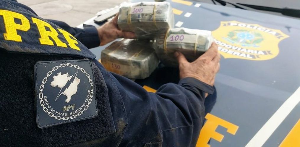 Durante a fiscalização do veículo com placas de Praia Grande/SP, os policiais perceberam alterações no assoalho do compartimento de carga. Ao abrir uma chapa metália com ferramentas, encontraram uma mochila com três fardos de dólares americanos, dois com 100 e um outro com aproximadamente 130 mil em notas.