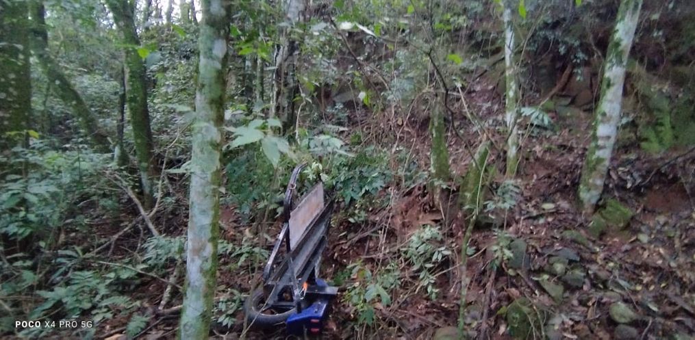 Conforme a PM, o objeto estava jogado em uma área de mata em um penhasco.