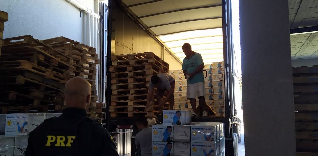 Policiais rodoviários federais do Núcleo de Operações Especiais escoltaram na tarde e noite desta quinta-feira, 26, uma carreta com 15 milhões de luvas cirúrgicas que serão usadas no combate ao Coronavírus.