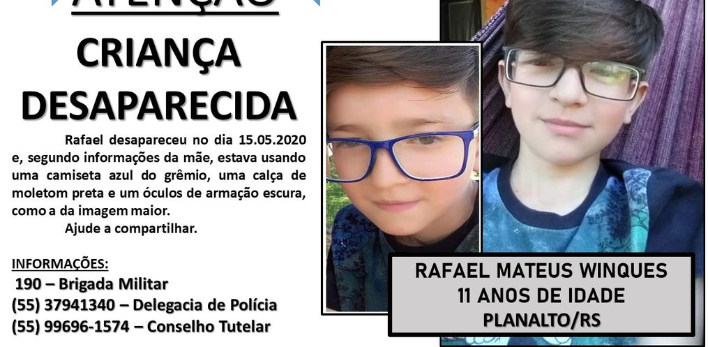 Segundo a família, Rafael Mateus Winques sumiu na última sexta-feira, 15. Ele foi dormir e na manhã seguinte, por volta das 8 horas, a mãe de Rafael foi até o quarto dele para acorda-lo e percebeu que o menino havia desaparecido.