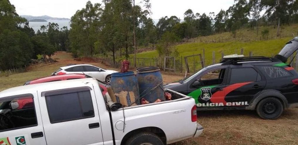Conforme a Polícia Civil, dois homens foram presos em flagrante no local. A operação ocorreu após investigação das delegacias de Pescaria Brava, Jaguaruna e Laguna, que tiveram apoio da Polícia Militar de Tubarão.