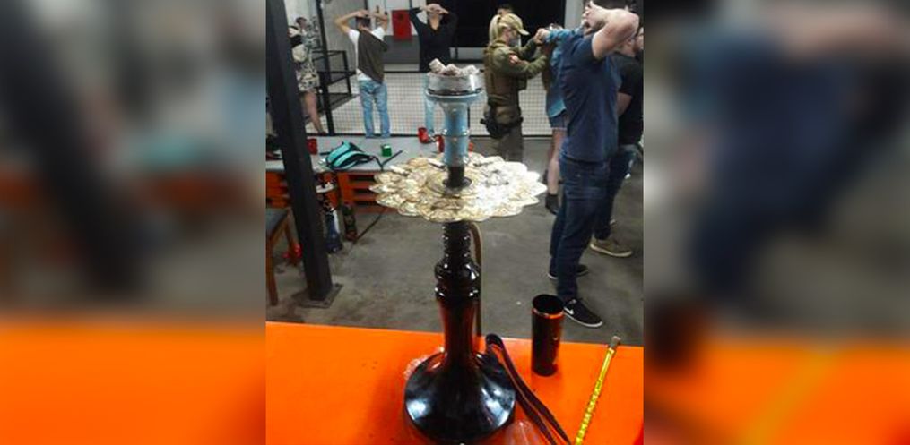 O grupo com idades entre 18 a 21 anos, foram flagrados todos sem mascaras, compartilhando copos de bebidas alcoólica e fazendo uso compartilhado de narguilé.