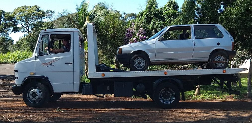 Em nova abordagem, desta vez com o carro em movimento, o homem teve o veículo guinchado em função de estar em mau estado de conservação. O condutor, suspeito do assalto, também não é habilitado.
