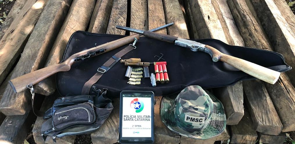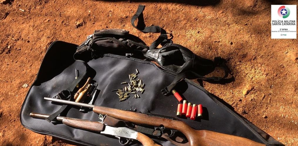 Em ação de fiscalização na fronteira contra a prática de caça e retirada de madeira nativa da Argentina, o 2º Batalhão de Polícia Militar Ambiental, por meio de seu Pelotão em São Miguel do Oeste, apreendeu nesta sexta-feira, 08, em um acampamento às margens do rio Peperi-Guaçú, no interior do município de Paraíso, duas armas de fogo, sendo uma espingarda calibre 12 com 7 munições e uma espingarda calibre 22 com 49 munições, além de dois apitos utilizados para atrair animais.