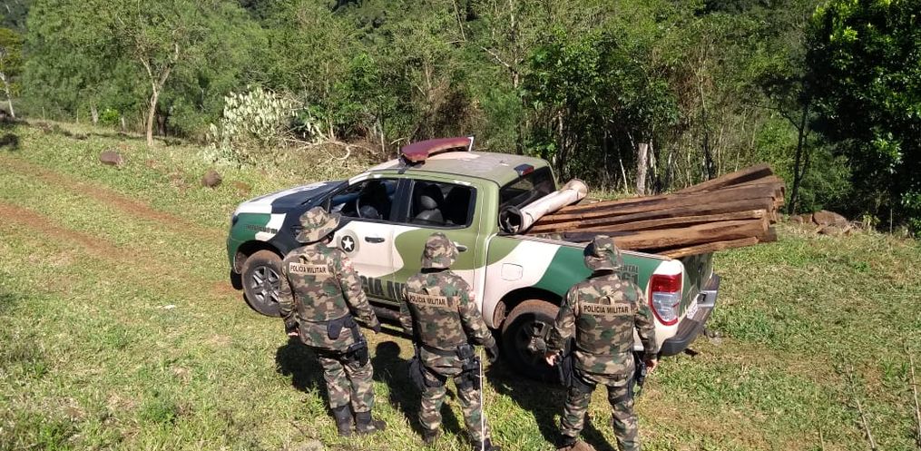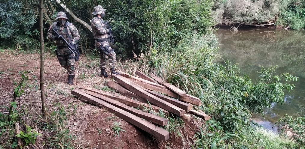 Os Policiais Militares também localizaram na mesma área, o depósito de 30 palanques de madeira nativa, possivelmente oriundos da República da Argentina. Os responsáveis ainda não foram identificados, sendo que as armas, os palanques e demais objetos foram apreendidos e adotadas as medidas legais previstas.