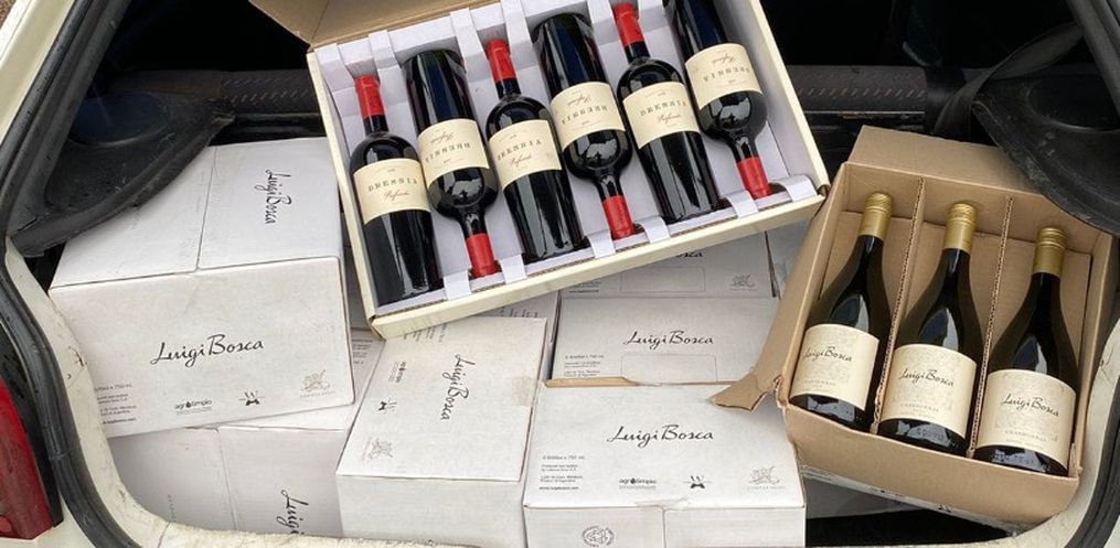 Durante a busca veicular, foram encontrados no porta-malas 11 caixas de vinho, totalizando 66 unidades em garrafas de 750 ml cada, todas adquiridas na Argentina e sem o devido despacho aduaneiro.