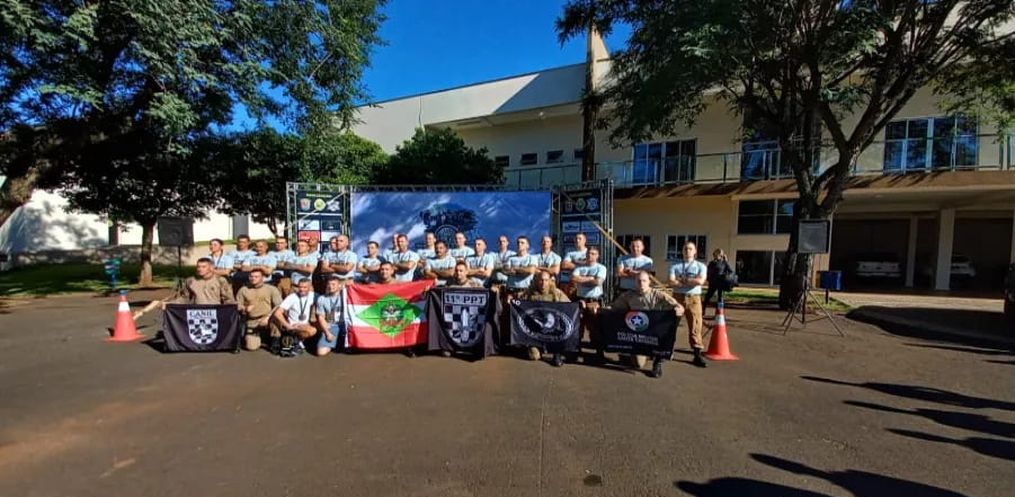 Policiais Militares lotados no 11? Batalhão de Polícia Militar de Fronteira em São Miguel do Oeste e no 36? Batalhão de Polícia Militar de Fronteira em Dionísio Cerqueira participam do evento.