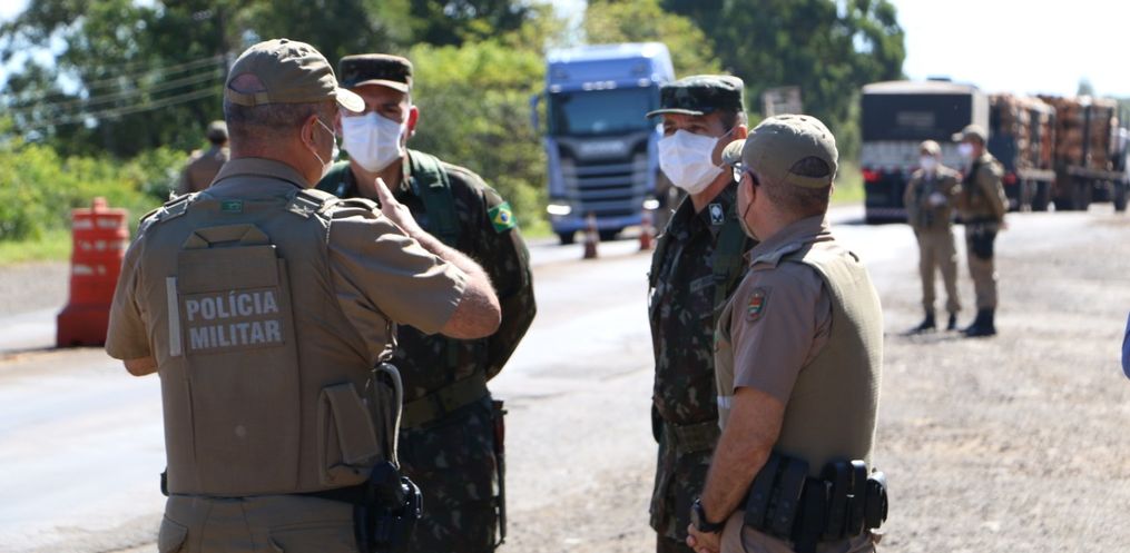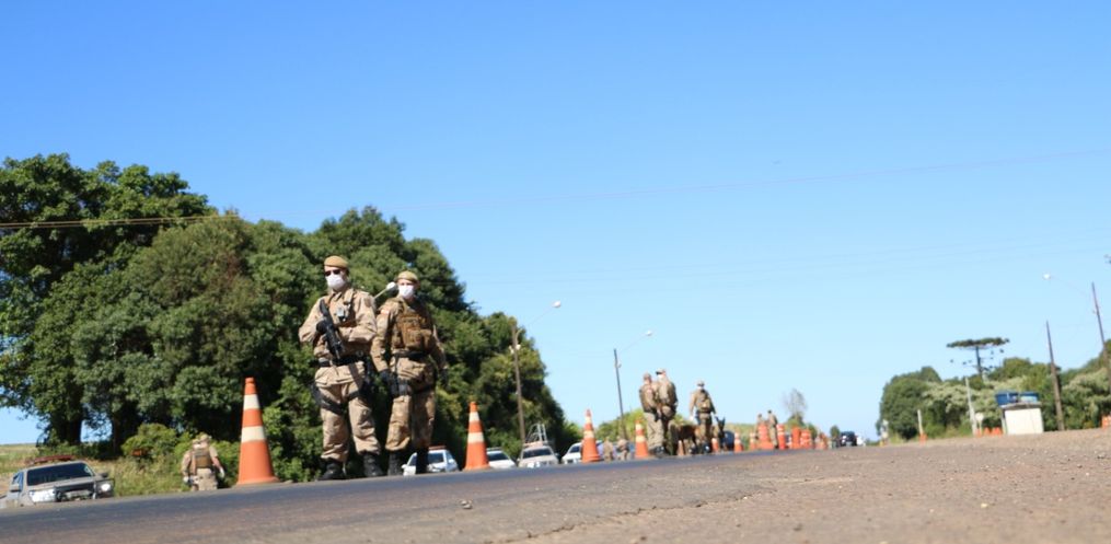 Foram mobilizadas barreiras fixas em pontos estratégicos de acesso ao estado para fiscalização da entrada de veículos e pessoas da Argentina, Paraná e Rio Grande do Sul e barreiras móveis nas cidades.