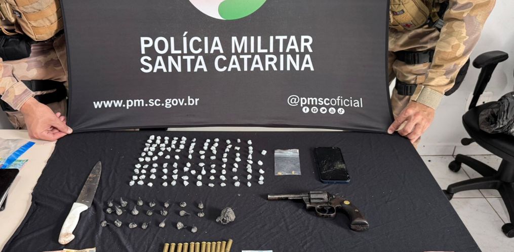 Segundo a Polícia Militar, o suspeito estava em frente à residência no momento da abordagem e portava R$ 102,00 em dinheiro. Dentro da casa, os policiais encontraram um revólver calibre .38 com 12 munições intactas, além de drogas prontas para a comercialização.
