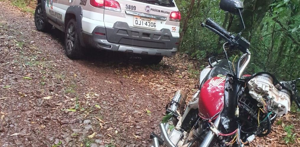 De acordo com a PM, a guarnição foi acionada por uma mulher que caminhava pelo local viu a motocicleta com o painel quebrado e com os fios arrancados.