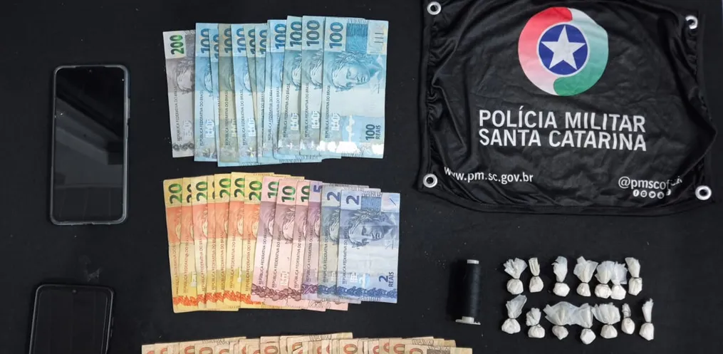 Na sequência, os policiais fizeram buscas no imóvel e localizaram mais 13 porções de cocaína fracionadas, totalizando aproximadamente 15 gramas, além de materiais para embalar drogas e cerca de R$ 3.200 em dinheiro.