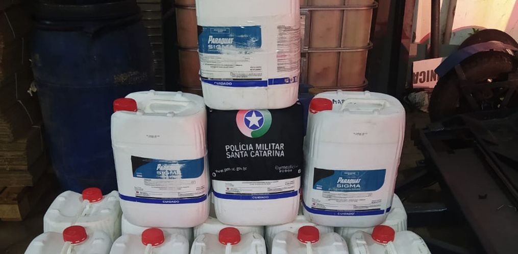 No local, a guarnição avistou um Monza e durante abordagem, o condutor relatou que era vendedor de cuias na cidade paranaense de Francisco Beltrão. Ao realizar a busca veicular, os policiais encontraram 20 galões de 20 litros cada de agrotóxico.