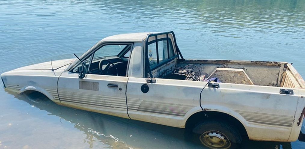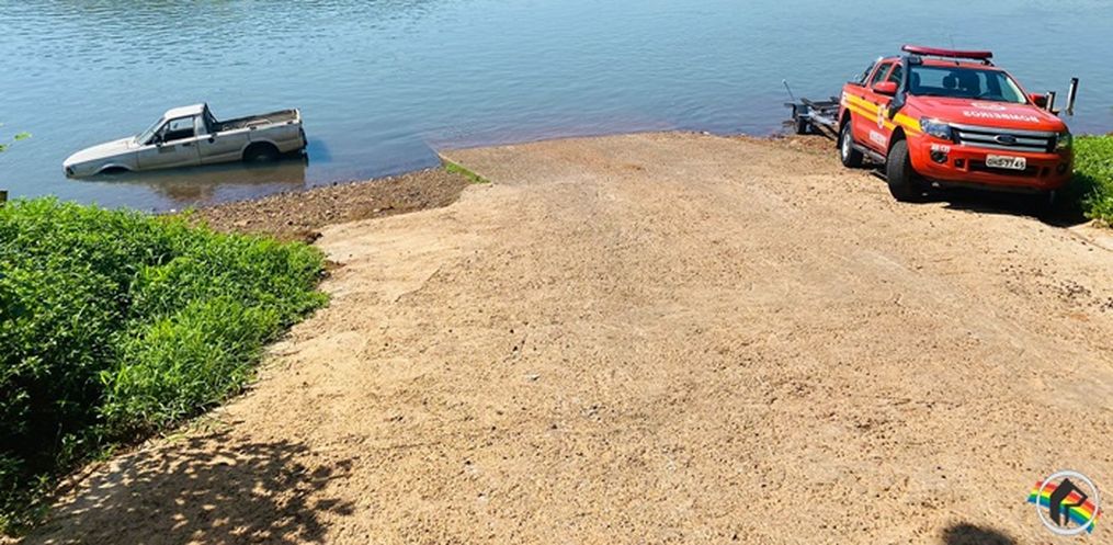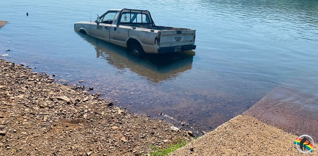 Já na manhã desta sexta-feira, 09, foi localizado um veículo Pampa, parcialmente submerso no Rio Uruguai, no Porto da AARUI, próximo à Praça dos Pioneiros, na entrada da cidade.