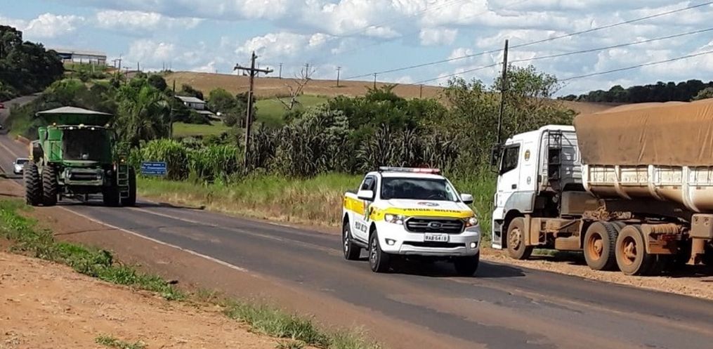 Na tarde deste domingo de carnaval, 23, a Polícia Militar Rodoviária Estadual (PMRv) realizou um apoio para que uma ceifa agrícola pudesse passar pela rodovia e sobre a ponte do Rio Chapecozinho em Bom Jesus, no Oeste de Santa Catarina.